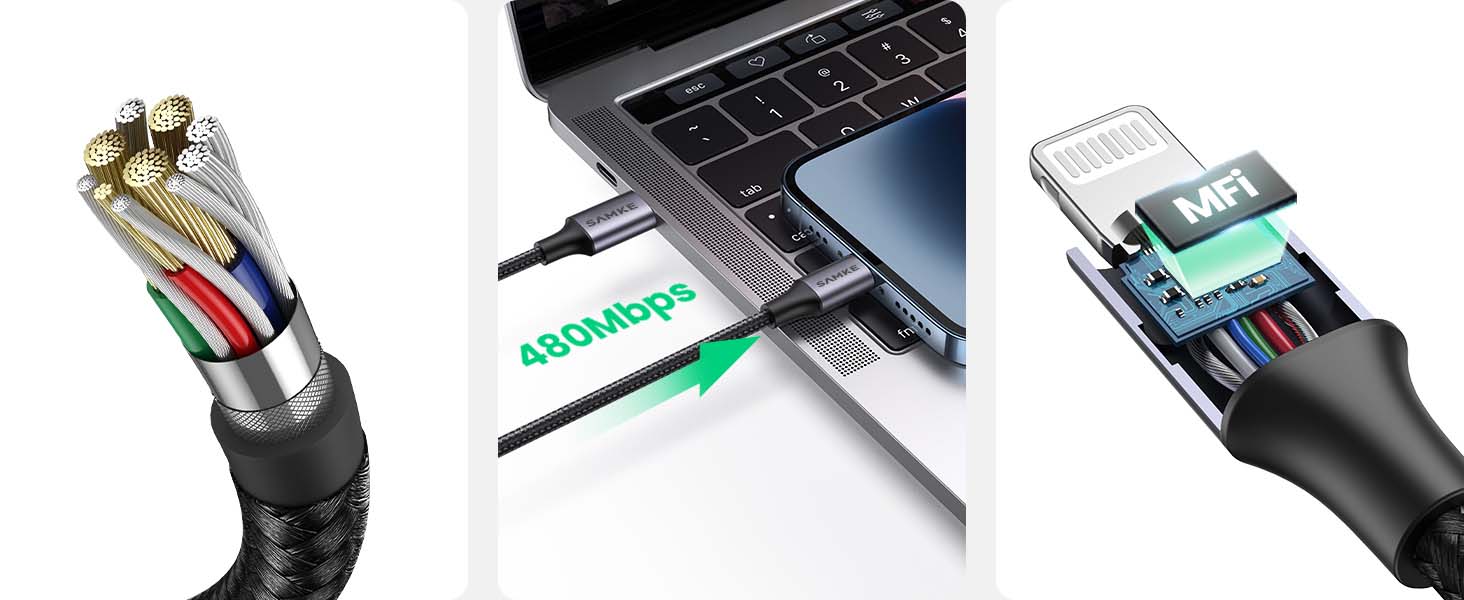 这款usb c to lightning采用原装C94连接器和MFi认证芯片,完成了MFi认证要求和严格的质量测试,确保您的iOS设备以最快的速度安全充电;没有警告信息打扰你,插上电源,它就可以工作了,完全没有麻烦。