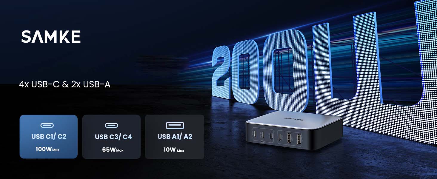 SAMKE 200W 6端口GaN USB C充电器