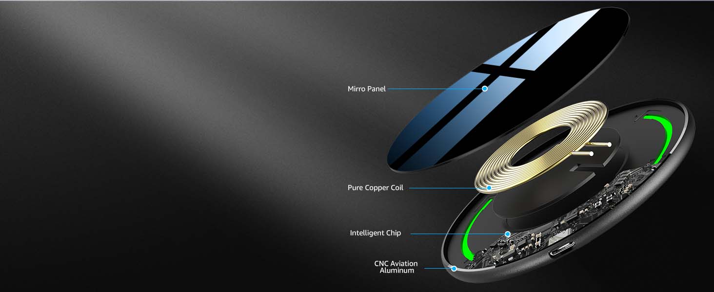 【升级防滑材料】与旧的W1无线充电器相比,升级后的W1充电器在顶部和底部使用了升级的防滑材料,使您在充电过程中保持设备稳定,防止其轻易滑动。